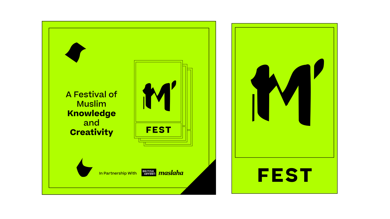 MFest is a multi-arts festival of Muslim knowledge and creativity. The visual identity echoes the way it bring together artists, activists, thinkers, organisations and collectives to celebrate the collective power of diverse Muslim communities. The simple neon green and black colour palette and logo with framing device provides a flexible tool for brand expression.